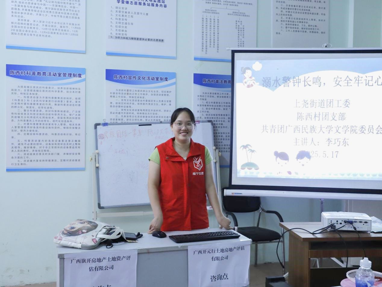 为提高小朋友防溺水安全意识,筑牢防溺水安全防线,5月17日,必威西汉姆联官网志愿者赴上尧街道陈西村新时代文明实践站开展“溺水警钟长鸣,安全牢记心中”爱心课堂活动。2023级汉语言文学3班李巧东担任主讲人。