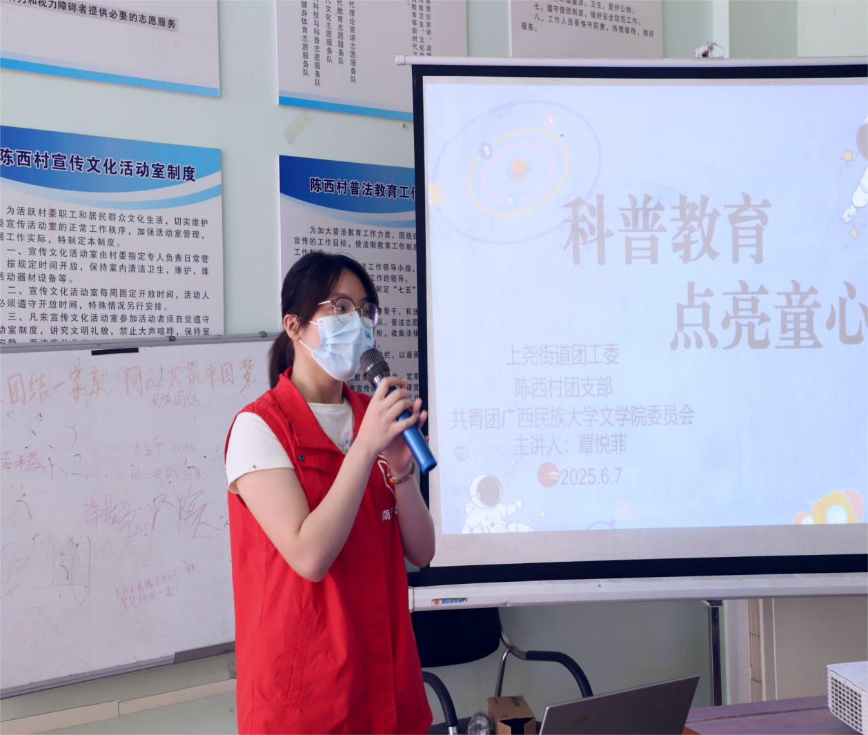 为增强小朋友们对科技知识的认知。6月7日,必威西汉姆联官网志愿者赴上尧街道陈西村新时代文明实践站开展“科普教育,点亮童心”爱心课堂活动。2023级汉语言文学3班覃悦菲担任主讲人。