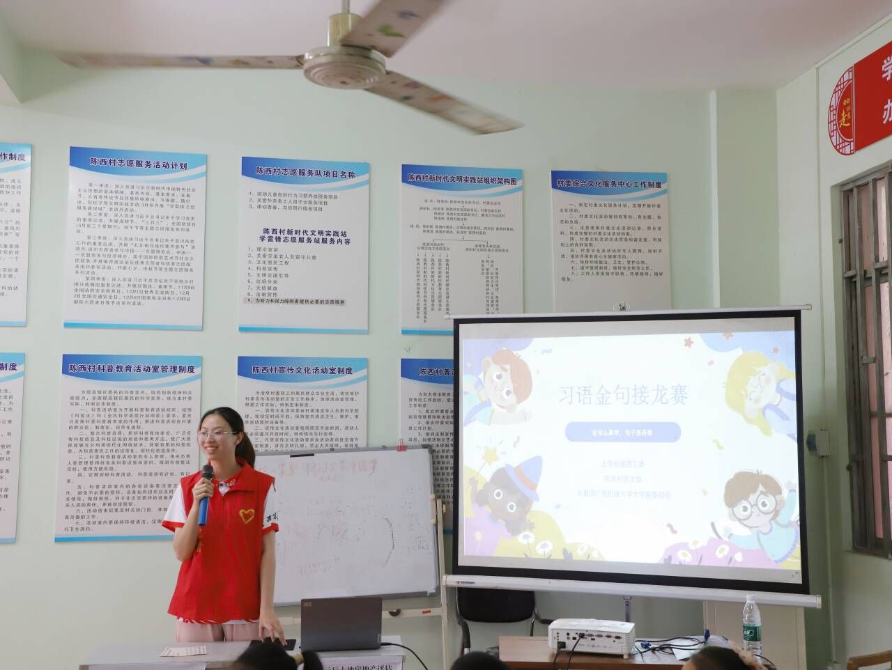 此次社会实践活动,团队始终以习近平新时代中国特色社会主义思想为行动指南,通过开设教育课堂、举办问答活动和开展习语金句接龙赛等多种创新方式,向小朋友们有效传播习近平新时代中国特色社会主义思想,引导其树立正确的社会主义核心价值观。