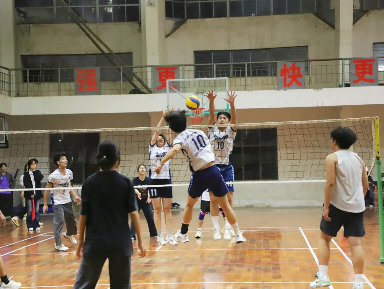 首场比赛由大四联队对阵大三联队。哨声响起,比赛开始。两队势均力敌,比分交替上升,赛场氛围持续升温。最终,大四联队凭借一记漂亮回击锁定胜局,以21:15的比分拿下首节胜利。面对首节的失利,大三联队并未气馁,迅速调整状态。大四联队也愈战愈勇,采用“三人拦网,两人策应”的策略将比赛推向白热化阶段。最终,大四联队凭借稳定的心态以29:27的比分险胜大三联队,夺得本场冠军。