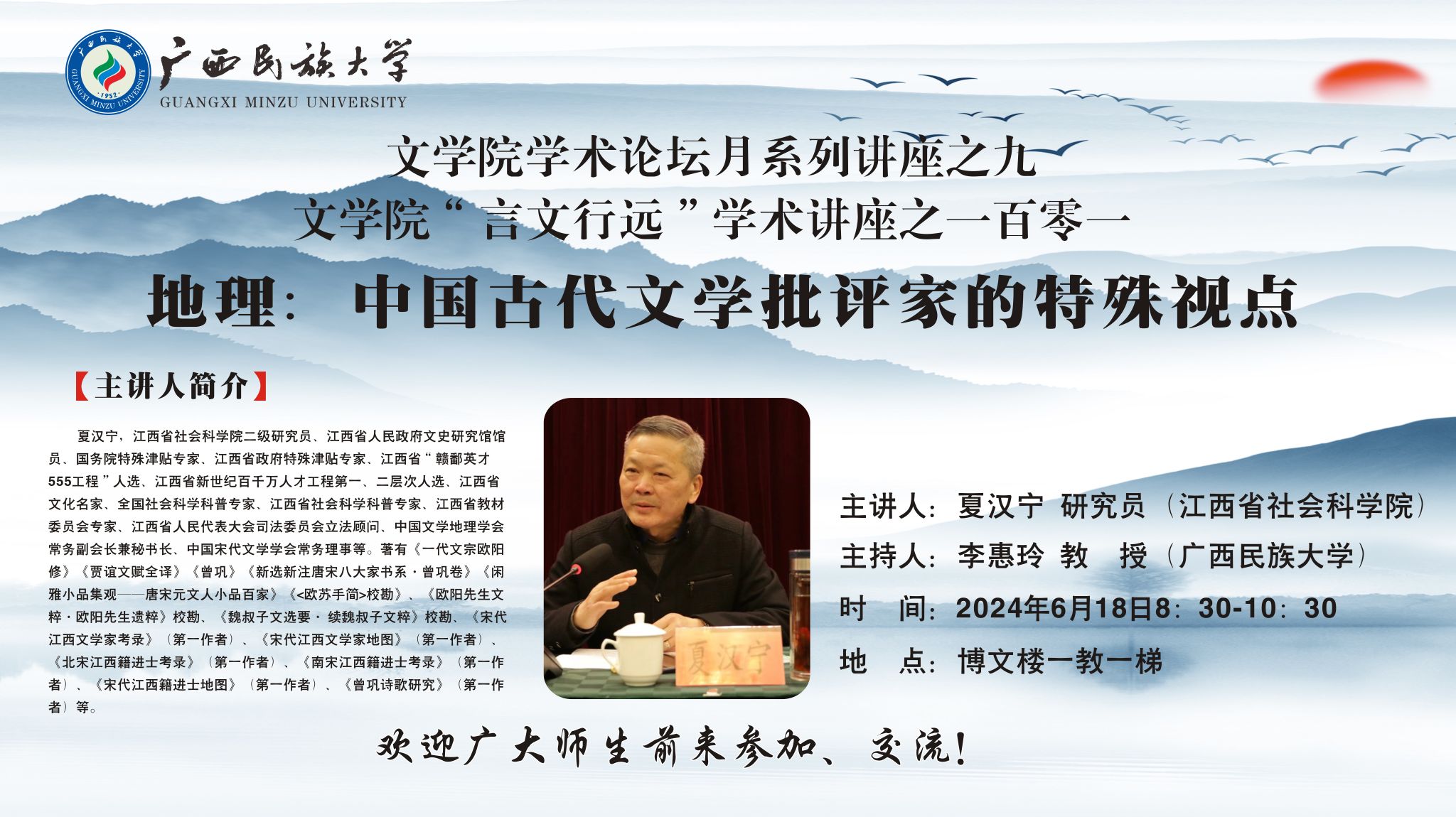必威西汉姆联官网学术论坛月系列讲座之九 必威西汉姆联官网“言文行远”学术讲座之一百零一
