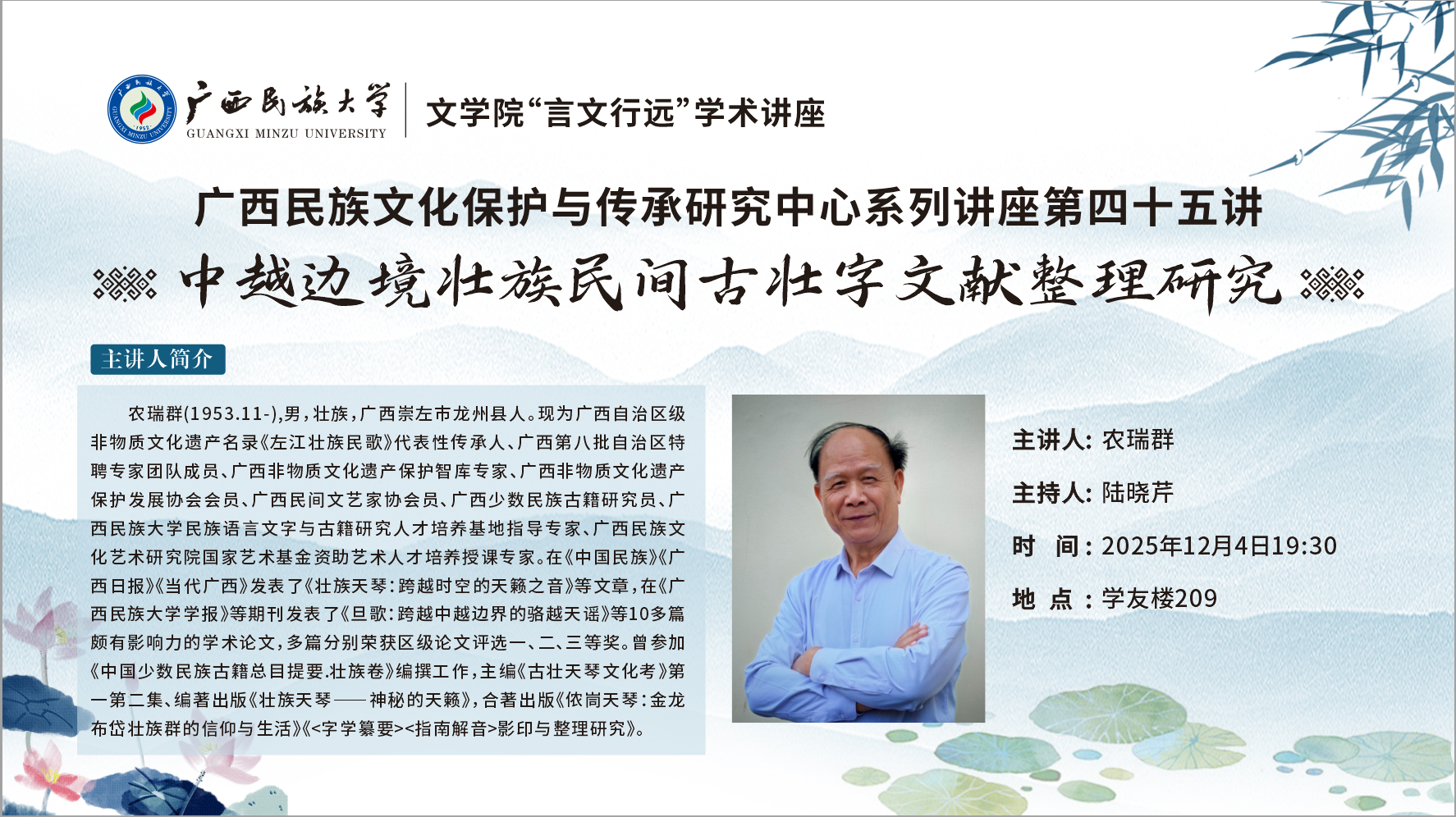 必威西汉姆联官网“言文行远”学术讲座 广西民族文化保护与传承研究中心系列讲座 第四十五讲