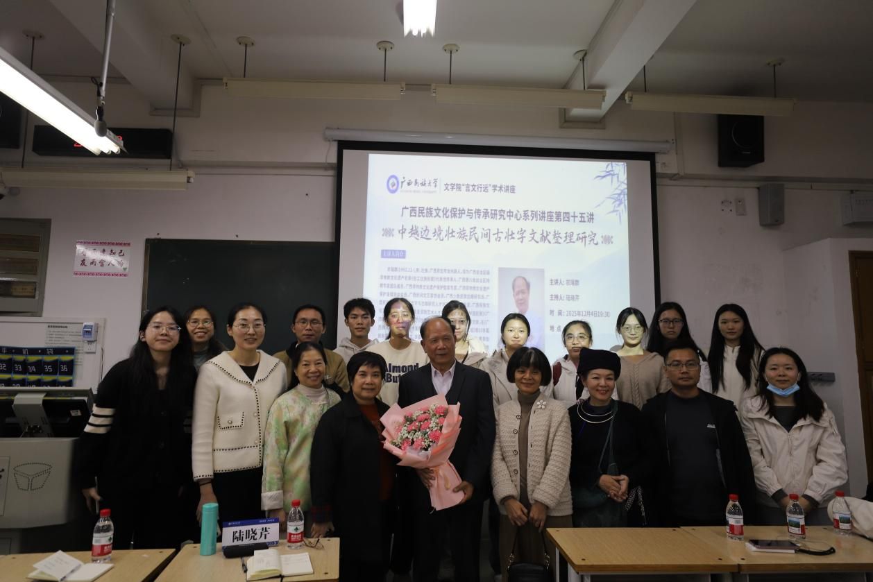 陆晓芹院长总结道,农瑞群先生长期致力于壮族文化研究工作,在非物质文化遗产保护、少数民族古籍整理等多个领域取得了丰硕成果。此次讲座不仅展示了中越边境壮族文化的独特魅力,更为相关学术研究提供了新的视角和素材。