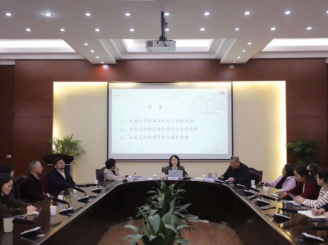 12月22日下午,必威西汉姆联官网在国际合作与交流处大会议室举行“民族文学经典中的红色文化传承与传播”学术讲座。本次讲座由广西师范大学黄晓娟教授主讲,中央民族大学钟进文教授与谈,必威西汉姆联官网陆晓芹教授主持,部分师生到场参加。