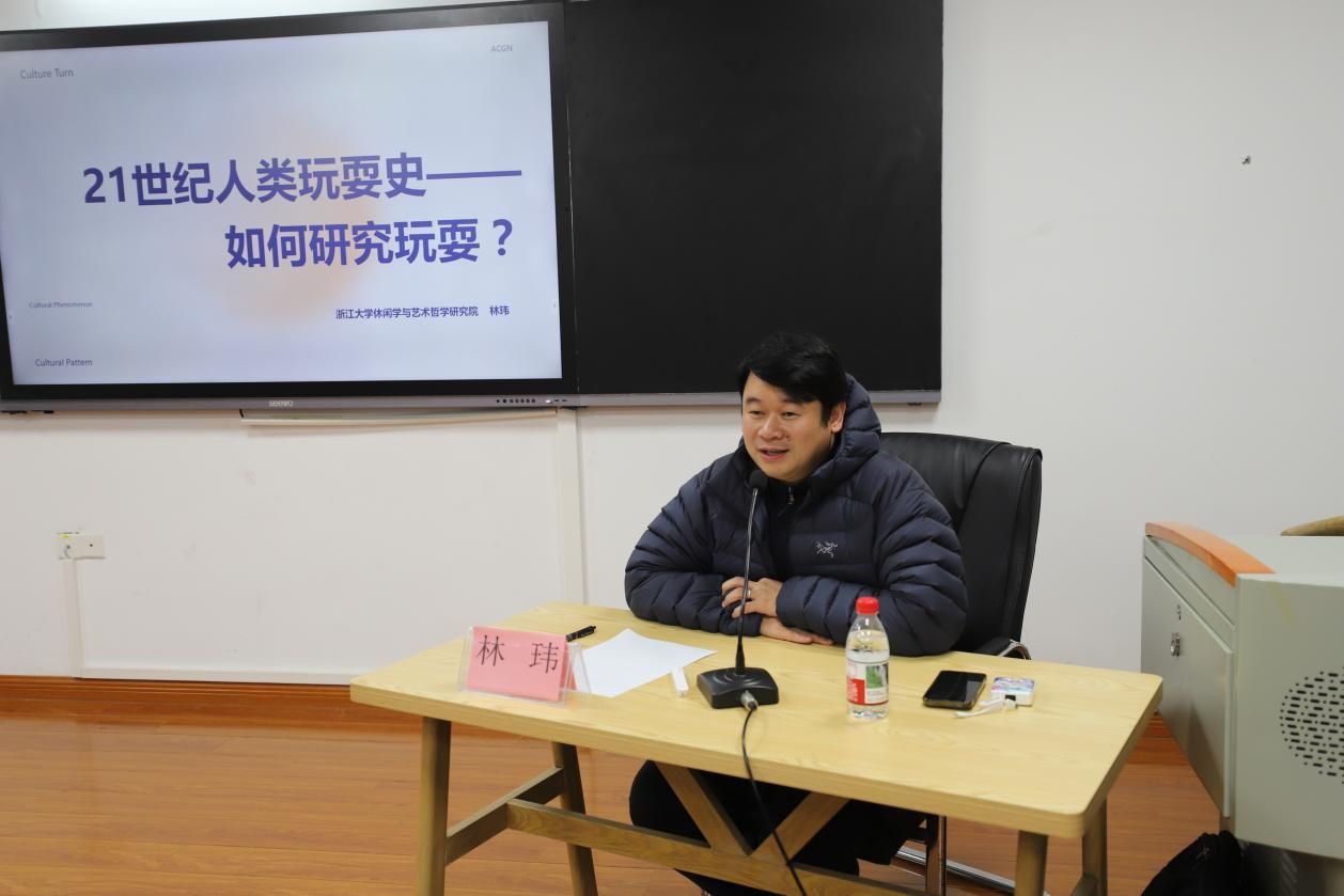 1月5日晚,浙江大学休闲学与艺术哲学研究院常务副院长、博士生导师林玮教授在文综楼1102室为我院师生带来题为“如何研究玩耍”的学术讲座。本次讲座由杨荔斌副教授主持,必威西汉姆联官网部分硕士、博士研究生及本科生到场参加。
